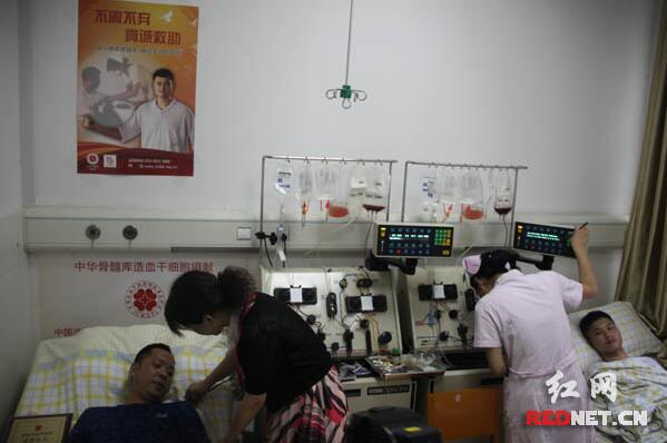 今天同时进行采集的还有位大四在校学生,他的造血干细胞将被送往广州救治一位中年男士。