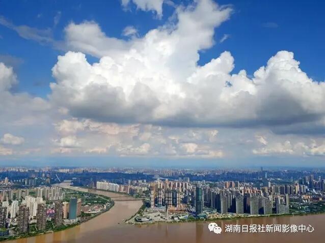 7月3日,长沙城区蓝天白云。目前,长沙湘江水位缓缓回落。晴好天气有利于防汛救灾,市民要注意防暑防晒。湖南日报记者 郭立亮