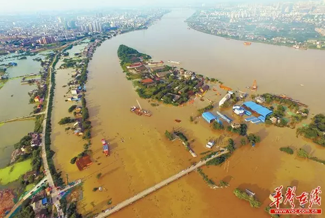 7月2日,被洪水淹没的湘潭市雨湖区杨梅洲。(资料照片) 湖南日报记者 田超通讯员 朱哲涵 摄影报道