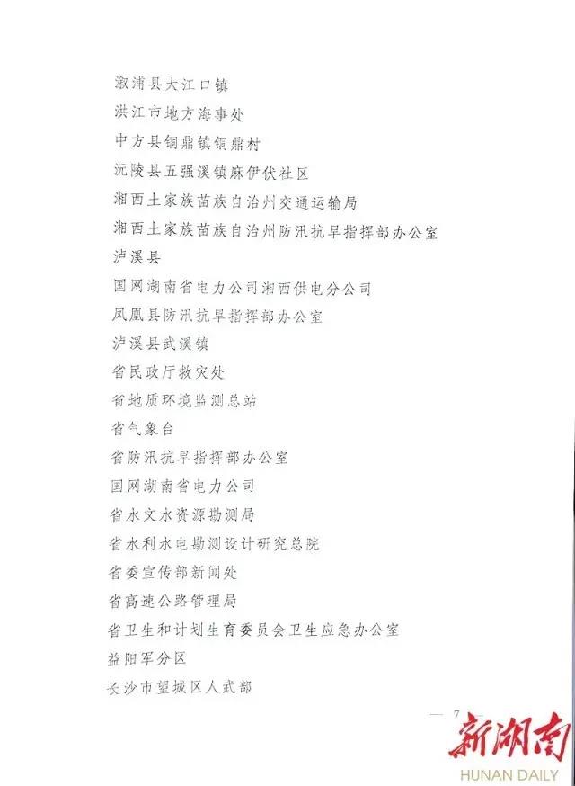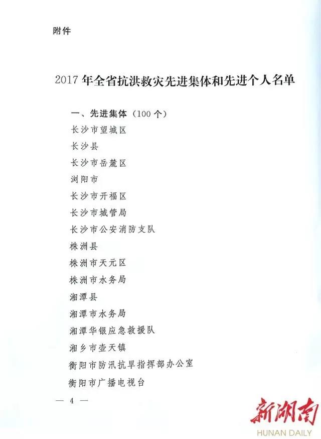 会议表彰望城区等100个单位为“2017年全省抗洪救灾先进集体”,李磊等302名同志为“2017年全省抗洪救灾先进个人”