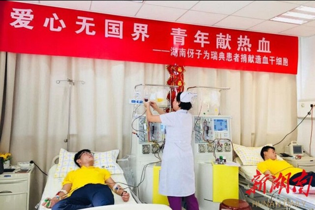 就在此前一天,在中南大学湘雅二医院血液内科干细胞采集室里,张一历经5个多小时完成了这场跨国界的造血干细胞捐献。张一是一名长沙男孩,今年24岁。4年前一次献血时张一加入中华骨髓库,成为一名造血干细胞献血志愿者。今年7月,张一接到中华骨髓库通知,他的HLA(人类白细胞抗原)与一名瑞典籍患者初配相合。9月6日起,张一在湘雅二医院血液科接受每天早晚各一针动员剂注射。“9月10日那天凌晨5点我就起床了,心想着即将进行造血干细胞采集,帮助别人战胜癌症,很是兴奋。虽然采集时间长,有些疲惫,但是有一股强大的力量支撑着我。世界那么大,只有我能救他,很值得?!闭乓缓敛缓蠡诘厮怠?