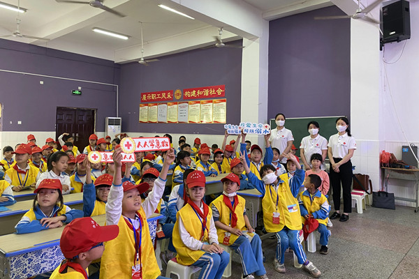 湘潭市红十字志愿者协会赴易俗河烟塘中心小学开展红十字“救在身边+生命教育”防溺水安全知识讲座