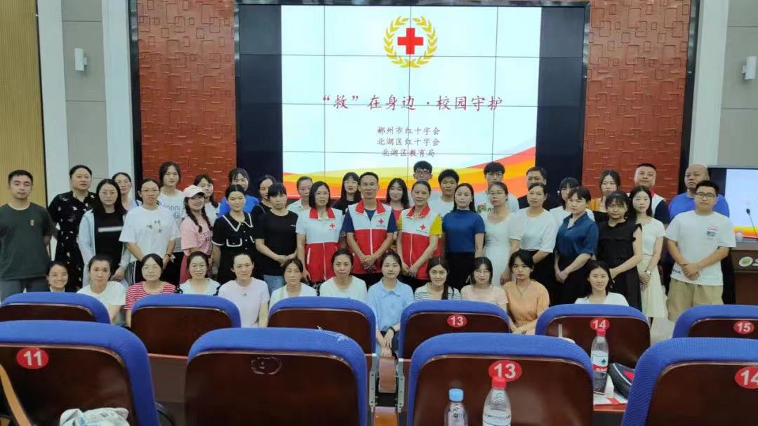为了进一步切实关心关爱未成年人成长,用实际行动守护未成年人生命安全,提高广大教师救护能力,郴州市红十字会携手北湖区红十字会开展第13期救护员培训班,这是在暑期放假时间,专门对老师进行的全面普及应急救护知识培训,来自全区教育系统的90余名教师参加了此次培训。